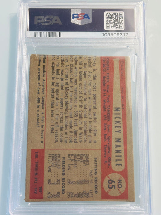 1954 Bowman Mickey Mantle #65 PSA/DNA 8 Autograph