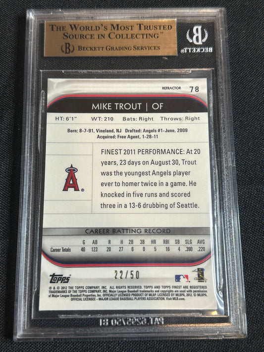2012 Finest Gold Refractors #22/50 Mike Trout #78 BGS 9.5 POP 7