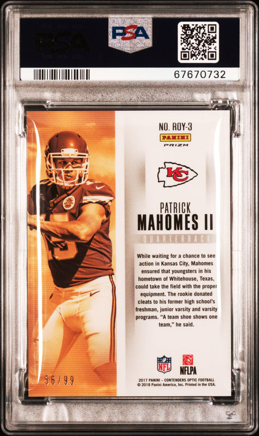 2017 Panini Contenders Optic Rookie Of The Year Contenders Patrick Mahomes II #ROY3 R. O. Y. PSA 9