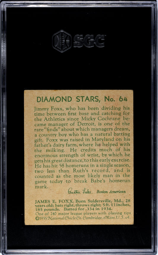 1934 Diamond Stars Jimmie Foxx #64 1935 SGC 2.5