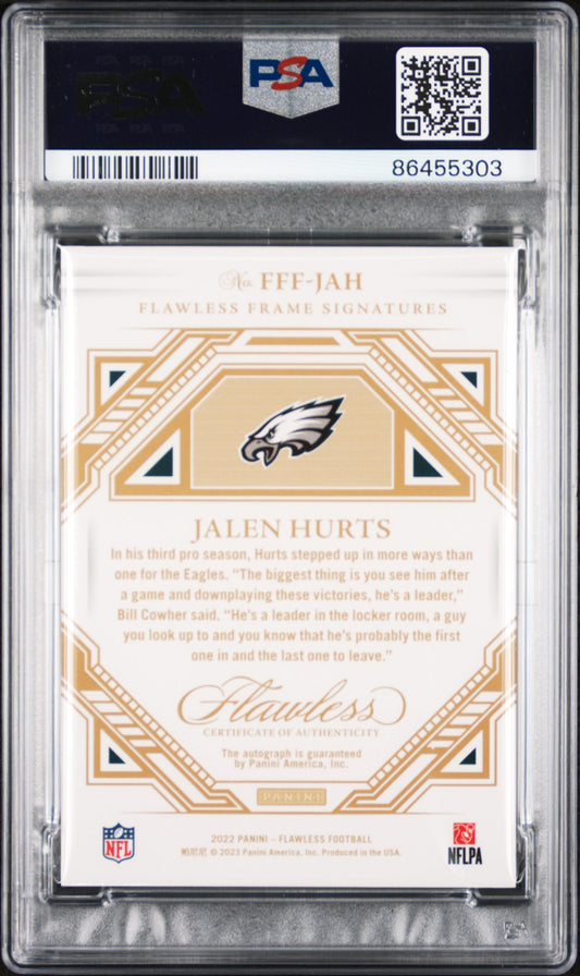 2022 Panini Flawless Flawless Frame signature Jalen Hurts Silver 17/20 PSA 10