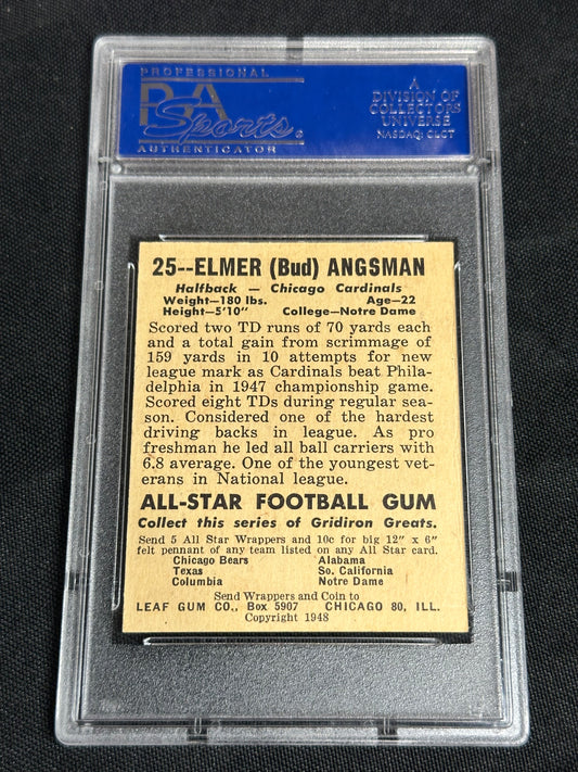 1948 Leaf Bud Angsman #25 Black Name On Front PSA 7