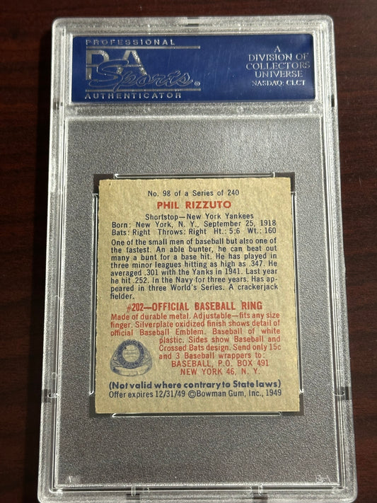 1949 Bowman Phil Rizzuto #98 No Name On Front PSA 8.5