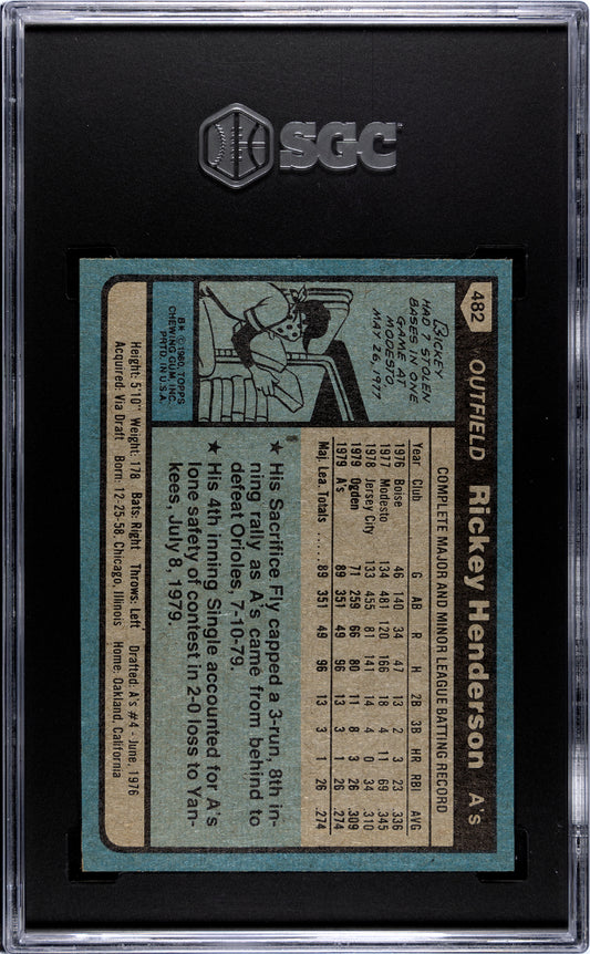 1980 Topps Rickey Henderson #482 SGC 9