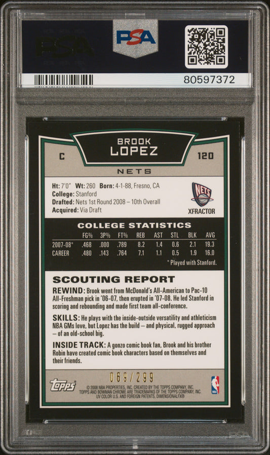 2008 Topps Chrome Brook Lopez #190 Xfractor PSA 10