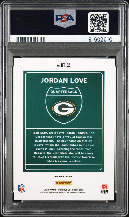 2020 Panini Donruss Optic Downtown Jordan Love #DT32 PSA 9/10 AUTO “GO PACK GO”