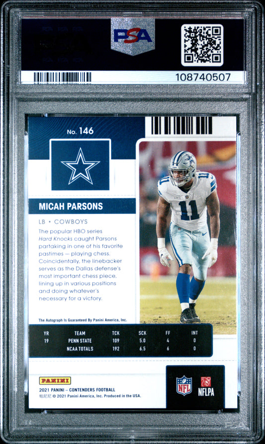 2021 Panini Contenders Micah Parsons #146 Auto Wild Card Round PSA 9