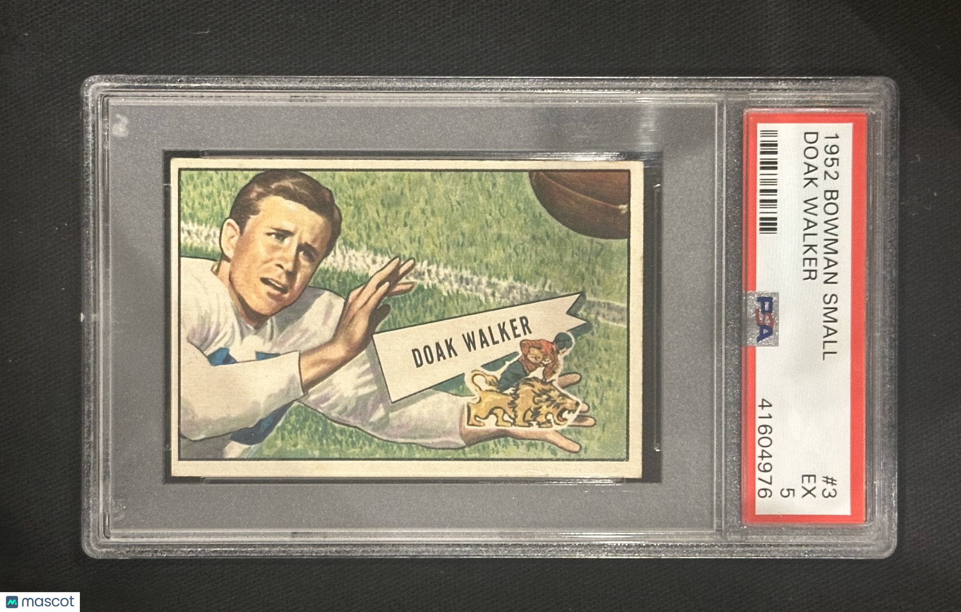 You are purchasing a 1952 Bowman Small Doak Walker #3 PSA 5. You will receive the exact item in the photographs. Thank you for looking. Listed With Mascot.