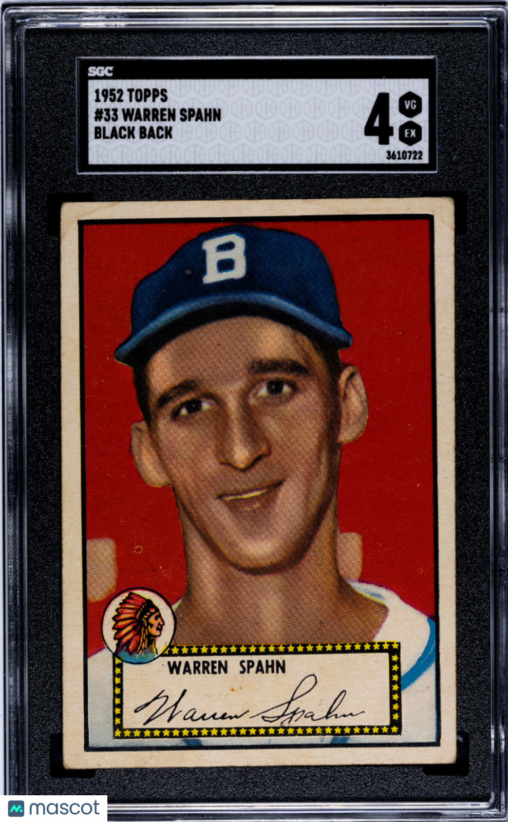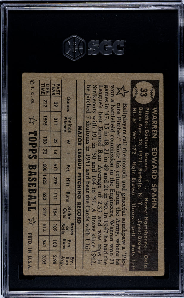 1952 Topps Warren Spahn #33 Black Back SGC 4