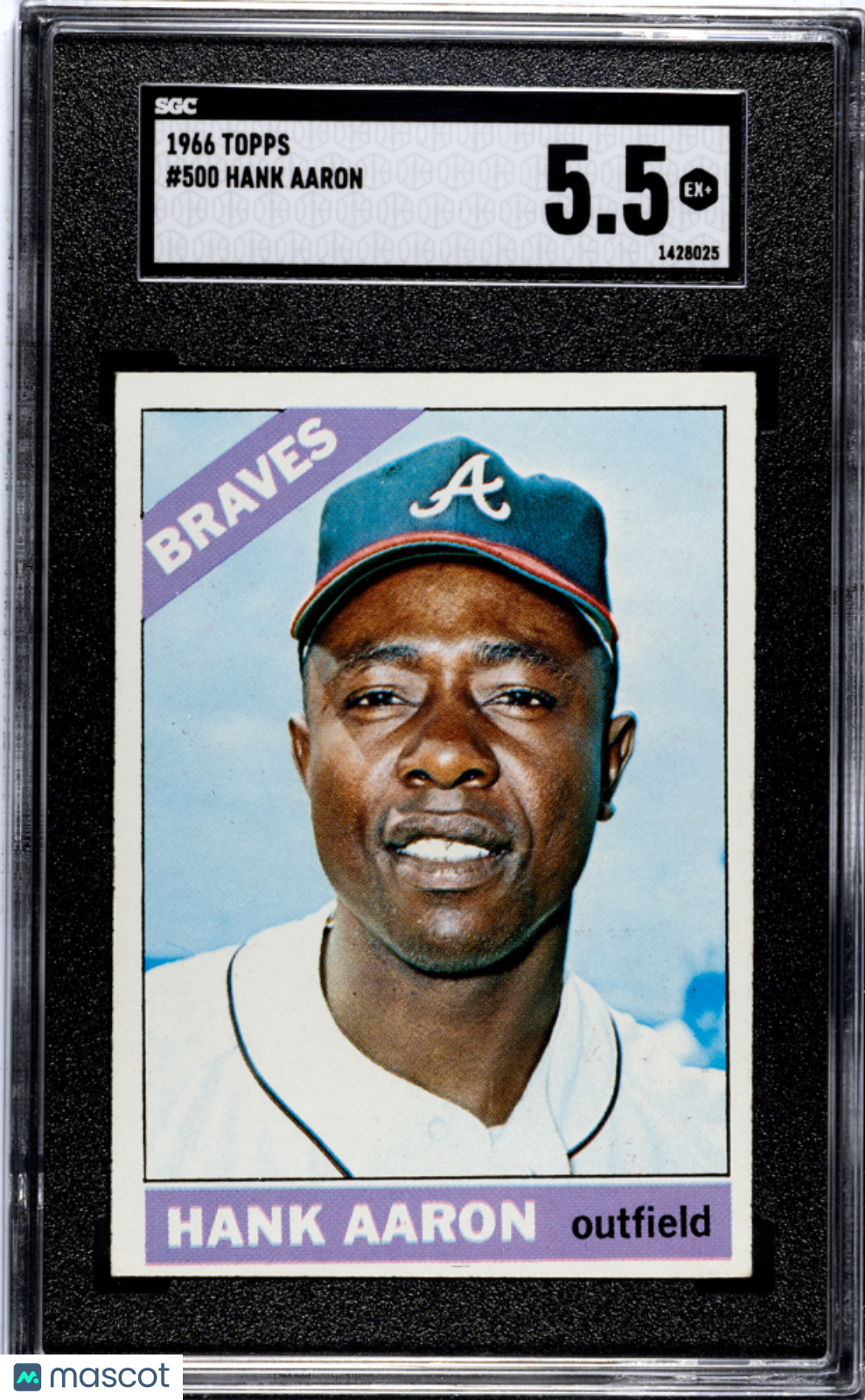 You are purchasing a 1966 Topps Hank Aaron #500 SGC 5.5. You will receive the exact item in the photographs. Thank you for looking. Listed With Mascot.