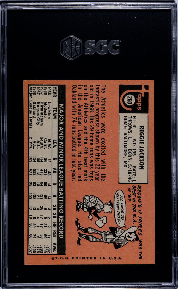 You are purchasing a 1969 Topps Reggie Jackson #260 SGC 6. You will receive the exact item in the photographs. Thank you for looking. Listed With Mascot.