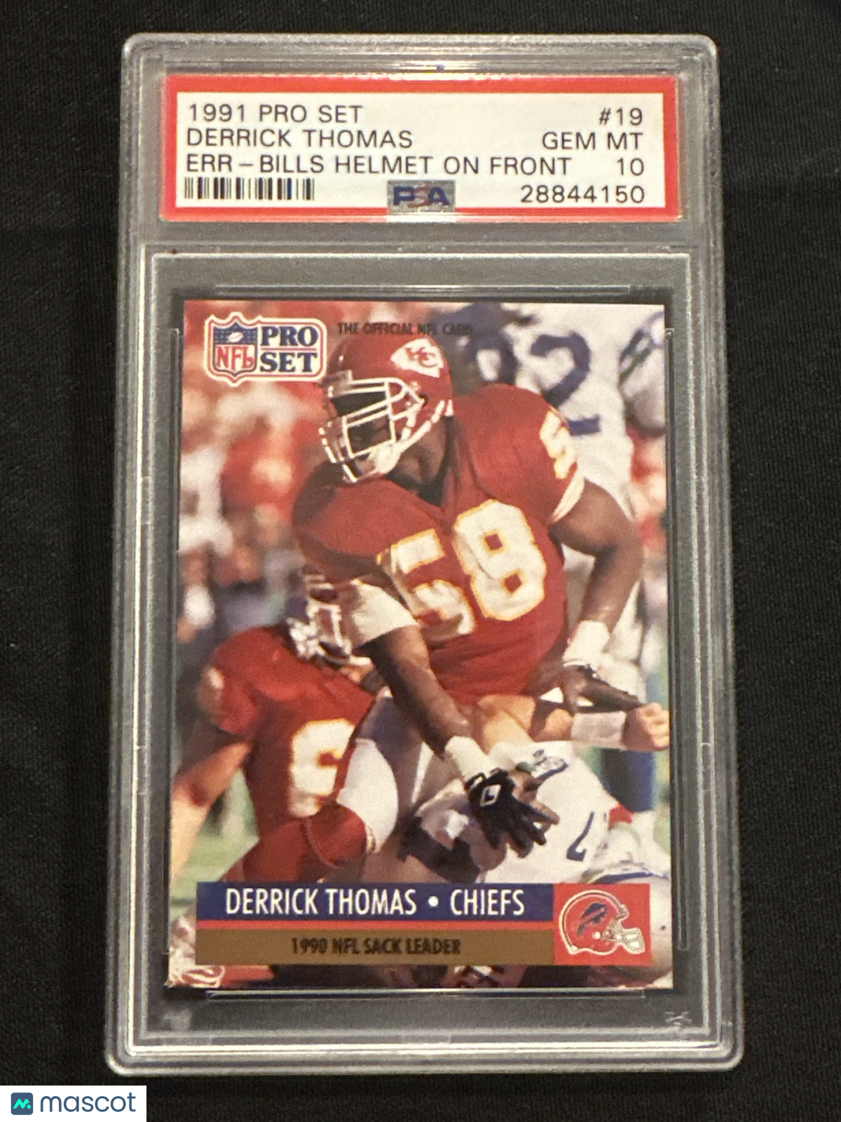 You are purchasing a 1991 Pro Set Derrick Thomas #19 Err Bills Helmet On Front PSA 10. You will receive the exact item in the photographs. Thank you for looking. Listed With Mascot.