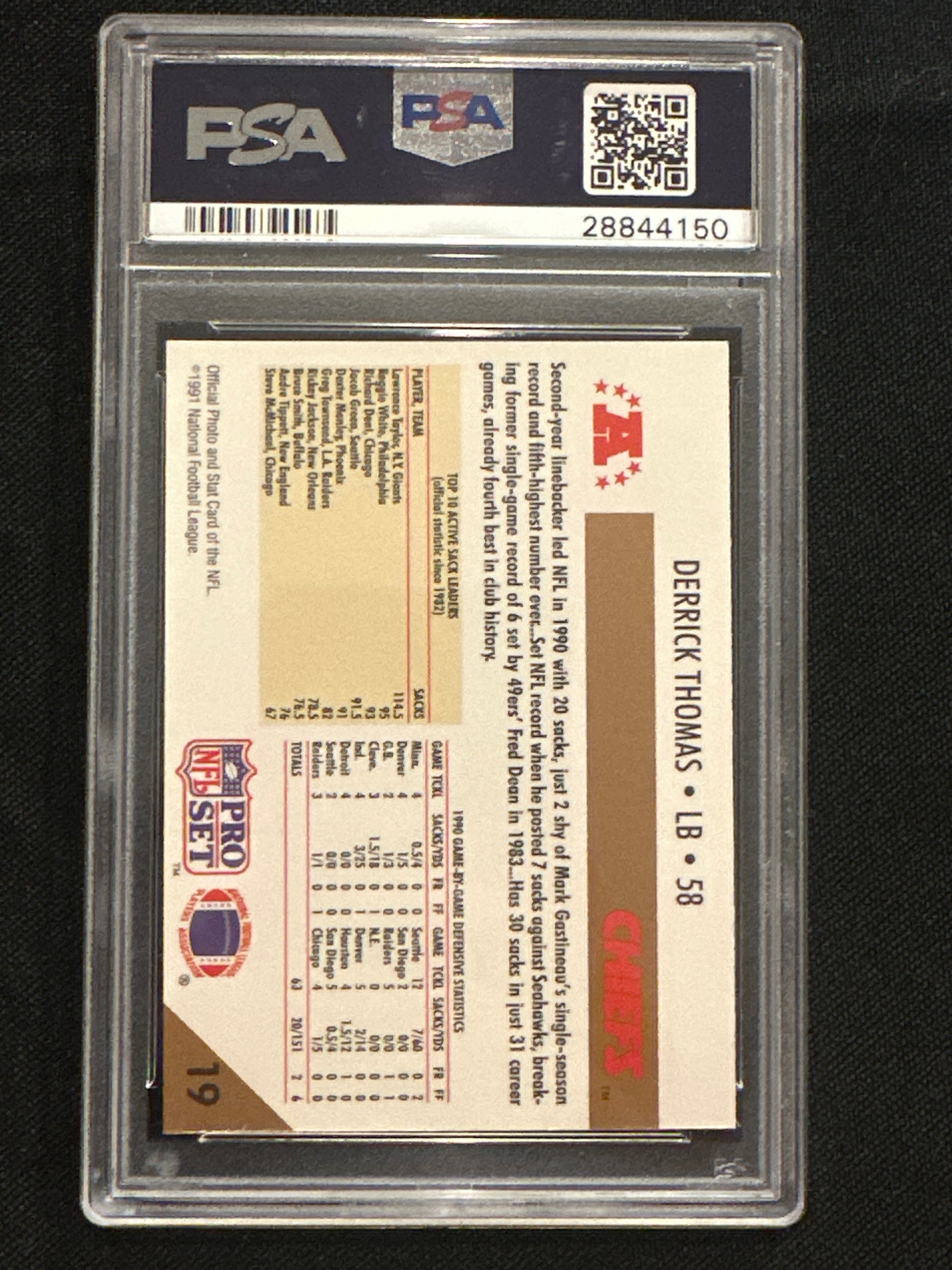 1991 Pro Set Derrick Thomas #19 Err Bills Helmet On Front PSA 10