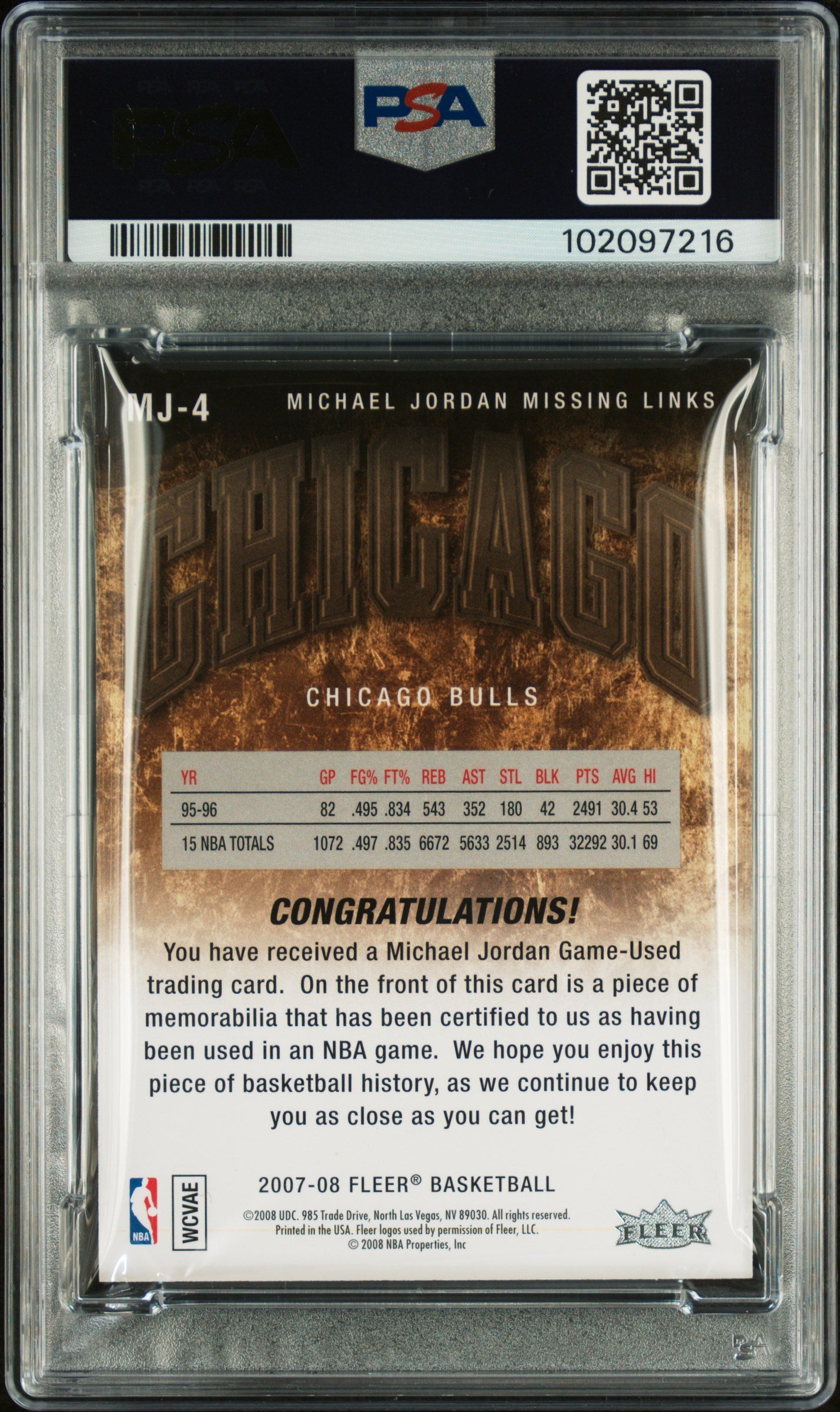 2007 Fleer MJ Missing Links Jersey Michael Jordan #MJ-4 PSA 8