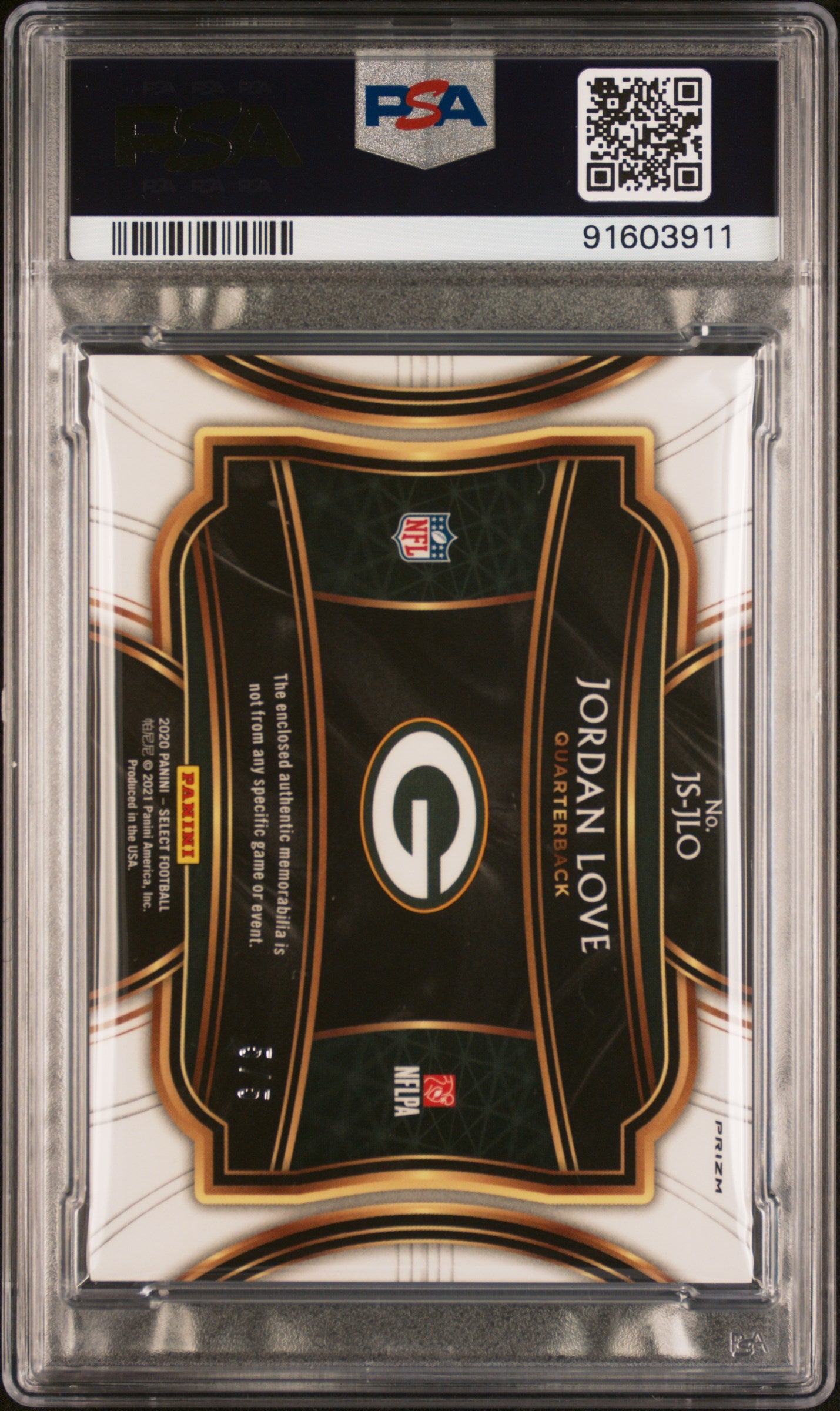 2020 Panini Select Jumbo Rookie Swatch Prizm Green Jordan Love #JLO PSA 9 # 5/5