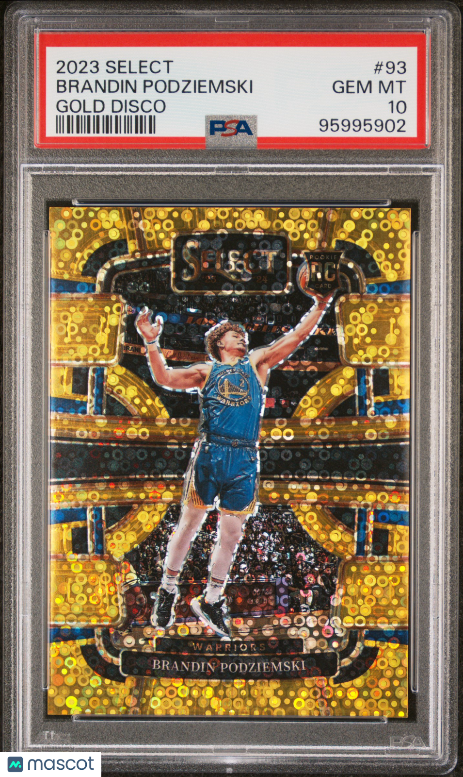 You are purchasing a 2023 Panini Select Brandin Podziemski #93 Gold Disco PSA 10. You will receive the exact item in the photographs. Thank you for looking. Listed With Mascot.